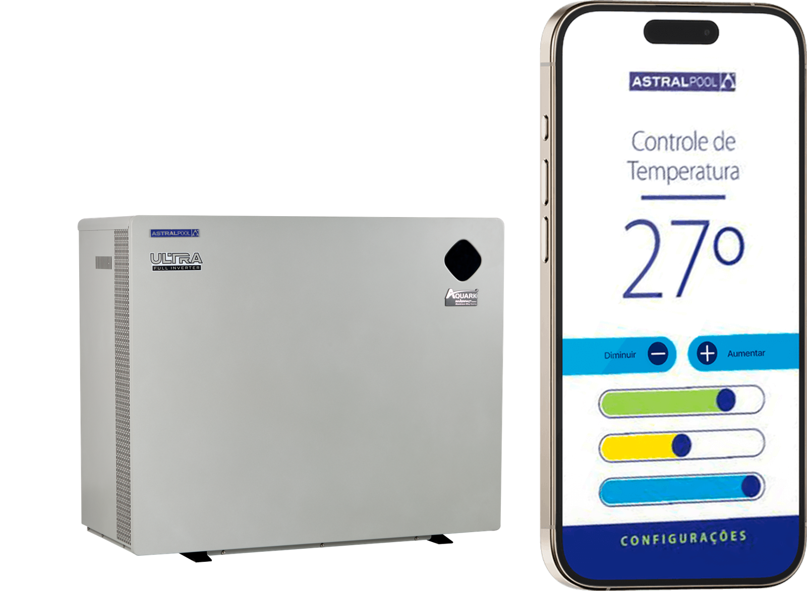 Regule a temperatura da sua piscina de onde estiver pelo App Ultra Full Inverter.